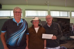 Club Mixed Triples sponsored by Cutting Edge Trophies, July 5th. Rick Dolley, Athol Trickett and Robbie Thomas.